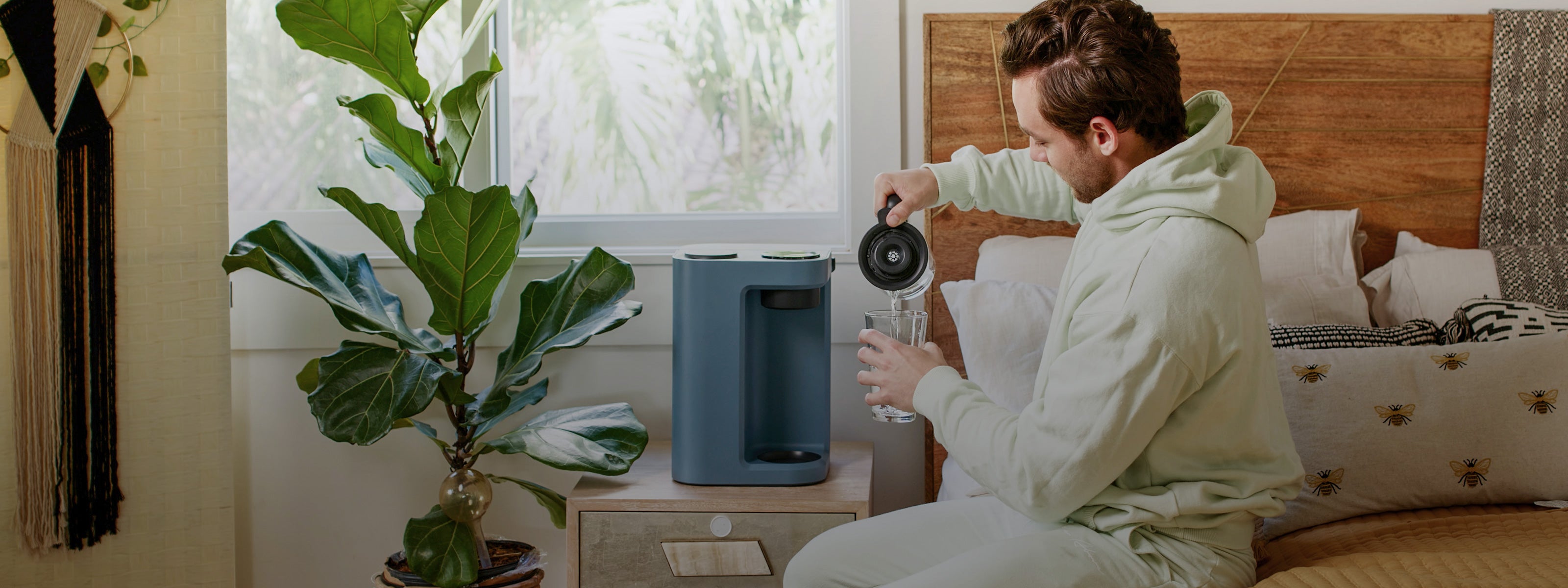 - COUNTERTOP DESIGN + PREMIUM-QUALITY GLASS CARAFE: No installation or plumbing is required for this product — all you need to do is plug the water purifier into any power outlet and you're ready to fill it up and go! And to make it even purer the water is dispensed into a high borosilicate glass carafe rather than a plastic container, leaving it even safer from pollutants and nasty chemicals.