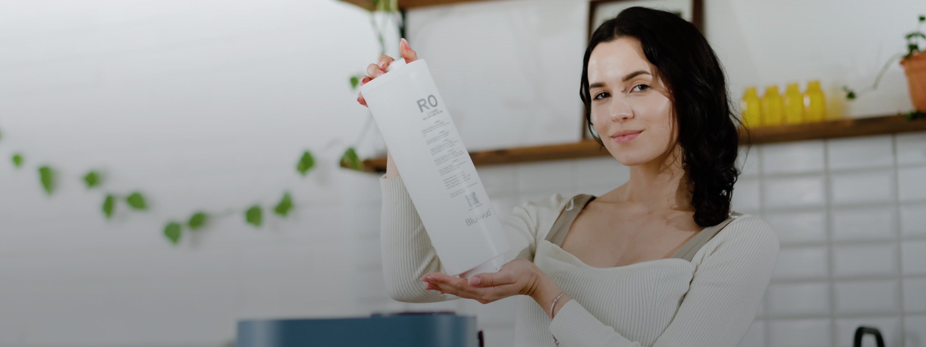 Bluevua's 2-stage Coconut Shell Carbon filter removes chlorine and organic matter.