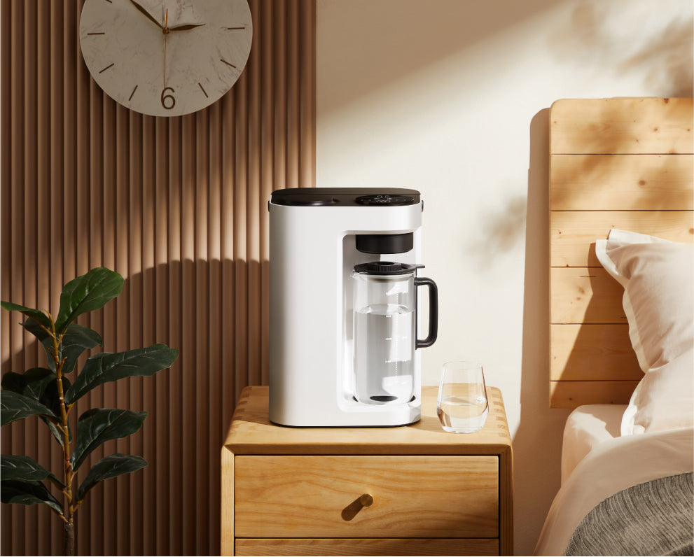 - COUNTERTOP DESIGN + PREMIUM-QUALITY GLASS CARAFE: No installation or plumbing is required for this product — all you need to do is plug the water purifier into any power outlet and you're ready to fill it up and go! And to make it even purer the water is dispensed into a high borosilicate glass carafe rather than a plastic container, leaving it even safer from pollutants and nasty chemicals.