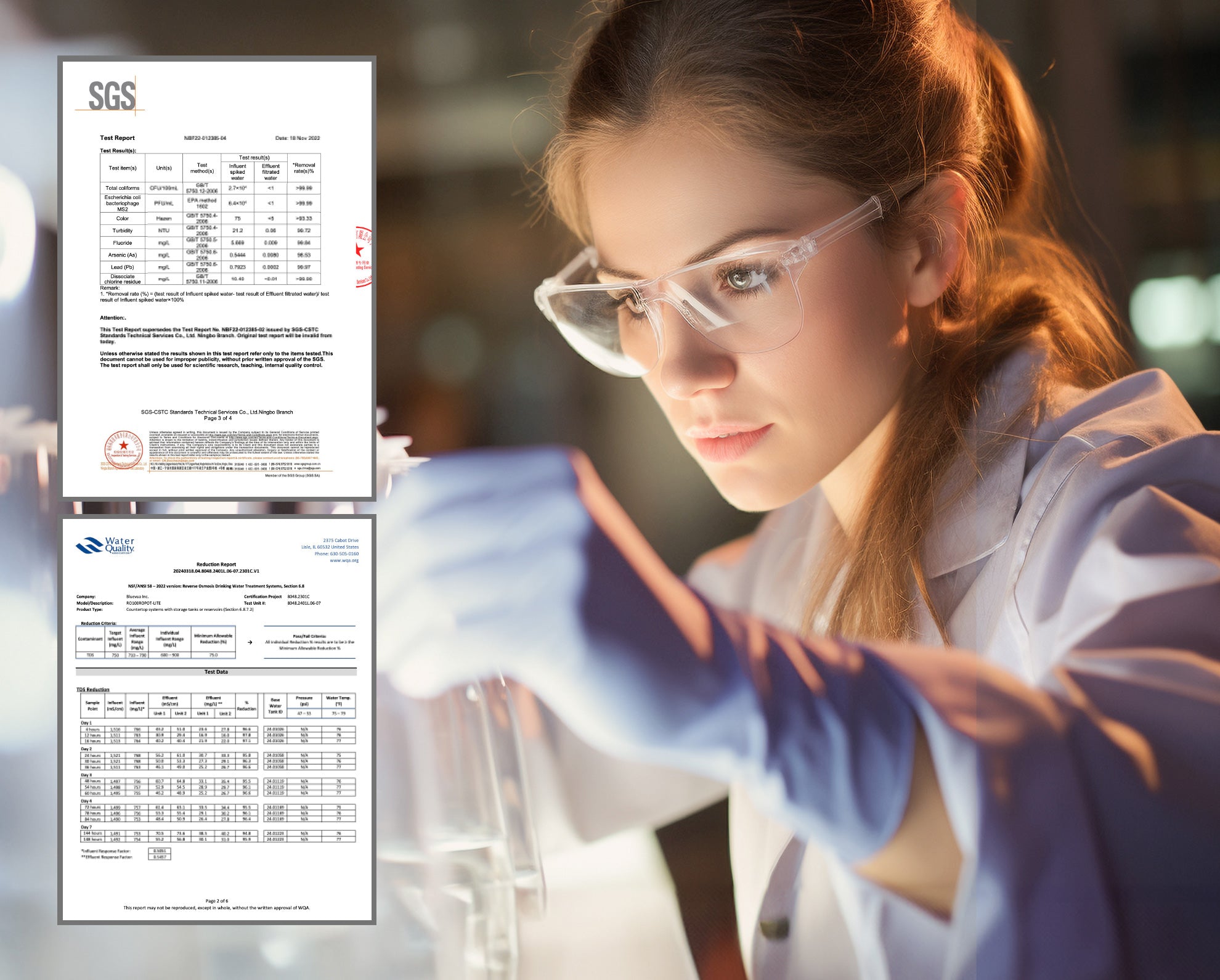 ระบบ ROPOT-Lite(UV) มาพร้อมกับเทคโนโลยีรีเวอร์สออสโมซิส 0.0001 μm เพื่อกำจัดสิ่งปนเปื้อนที่เป็นอันตรายจำนวนมาก ประสิทธิภาพการกรองของระบบขั้นสูงนี้ยังได้รับการทดสอบอย่างเข้มงวดโดยหน่วยงานที่นับถือ รับประกันความบริสุทธิ์ของน้ำกรองที่ตรงตามมาตรฐานของคุณ สำหรับข้อมูลเชิงลึกโดยละเอียดเกี่ยวกับผลการทดสอบ เราขอเชิญคุณเข้าดูรายงานการทดสอบที่ครอบคลุมโดยคลิก ที่นี่